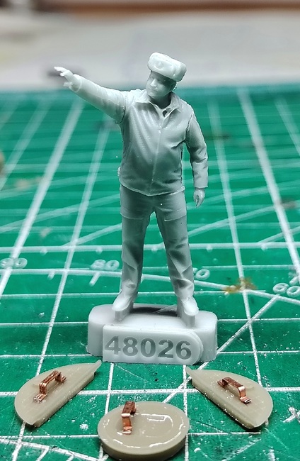 | Всем доброго утра! Скрепя зубами потихоньку продолжаю, уж сильно не пинайте, как есть это мой первый самолет в 48 масштабе. Ну хочу вам представить героя, роль я ему назначил водитель АПА-5Д будет, почему? Потом покажу. Авиатехник в пути........ Ну и в придачу стояночные заглушки на ВЗ и Сопло, они из смолы ручки родные срезал добавил из меди свои.