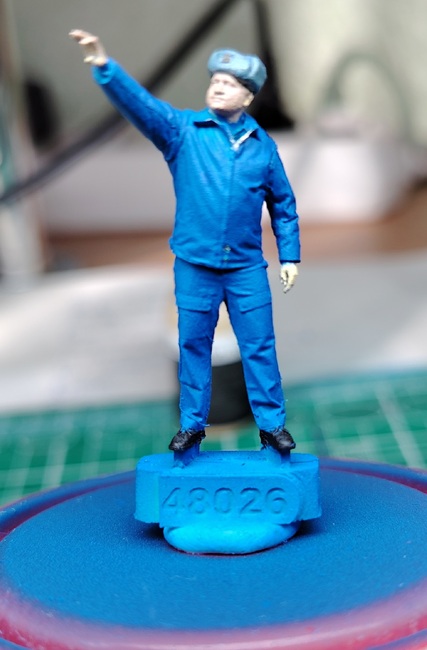 | Ну сразу что бы не было нюансов, Элка как заметили в окрасе уже новом после 2010. Уж очень мне понравился яркий необычный окрас с кучей надписей рег номер , "ВКС РОССИИ" новые звезды с синей окантовкой необычно и красиво.....Ну а фигурки в форме с 90х до 2007 года. Нестыковочка? Да, почему так? Когда возник вопрос был выбор между этими фигурами от LiveResin либо от TEMPMODELS у них как раз летный и тех состав уже в новой форме ВКС. Как мне показалось от LiveResin фигурки по живей и поинтересней да и более как то родней моему глазу, ну и тем более их недолго заменить.........)))) Вот сам герой в цвете, фото делал сразу после покраски, форму я состарил с лицом не заморачивался прошелся смывкой. Почему он водитель АПА? А он лучше подходит на роль, с вытянутой рукой к ручке двери на кабине УРАЛА АПА.