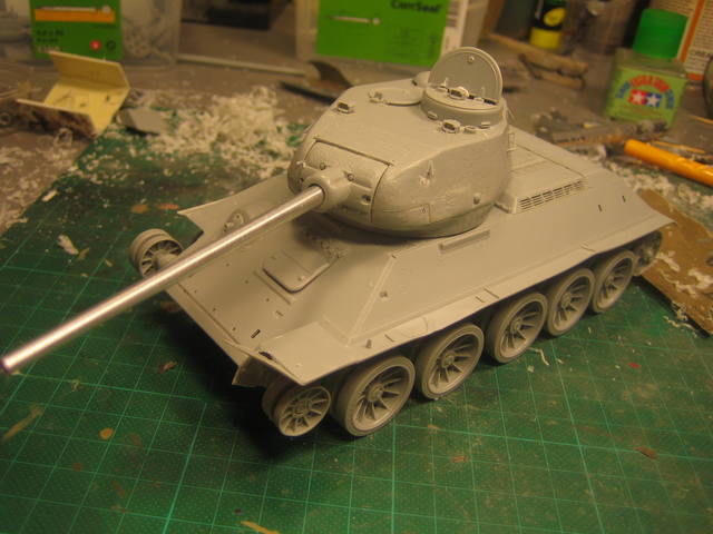 Значит собрал из коробки 34у,пару вещей добавил отсебятины,конкретно бочка,бак, два ведра,ящик зип,"бревно" из веточки какого то дерева и стальные тросы 0,1мм обожженные на огне.Красил красками воллехо и немного ак интерактив
