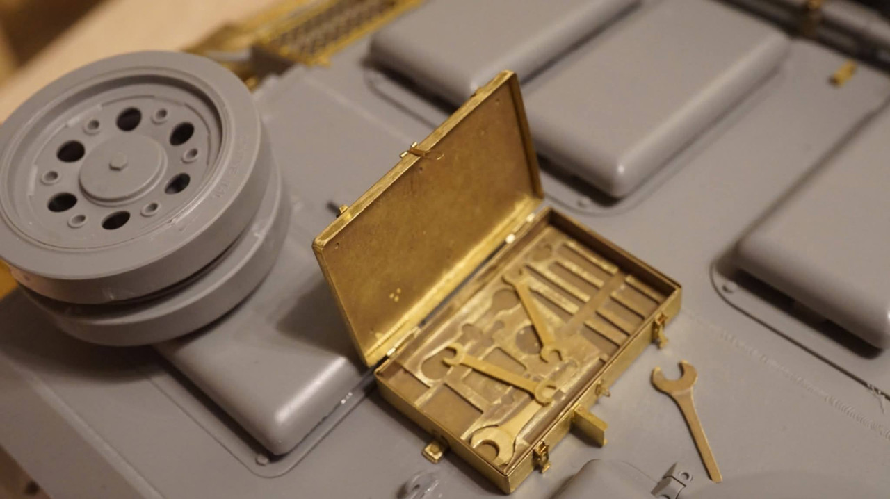 | Приветствую. Строю тройку, попутно делаю для нее некоторые детали самостоятельно, дошла очередь до ящика на левой надгусеничной полке, вот этого...