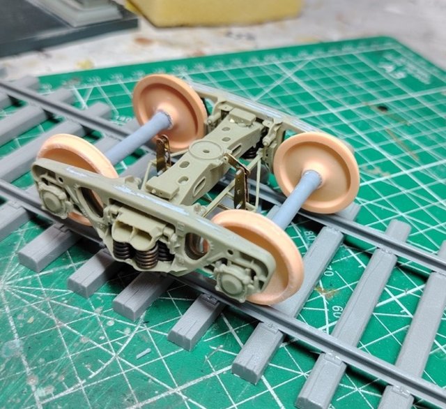 | Добрый вечер друзья и коллеги! Продолжаю........ В этот раз колесные тележки, первую собрал с большим количеством нецензурных слов . С смолой работал впервые, ну а вторая уже без проблем. Симпатичные тележки вышли. Пружины (амортизаторы тележек) странно разные по высоте, хорошо что в свое время у меня была до этого куплена тележка и можно было подобрать. Крепления тормозных башмаков очень нежная, на двух у меня обломились усы, опять выручила запасная коробка.