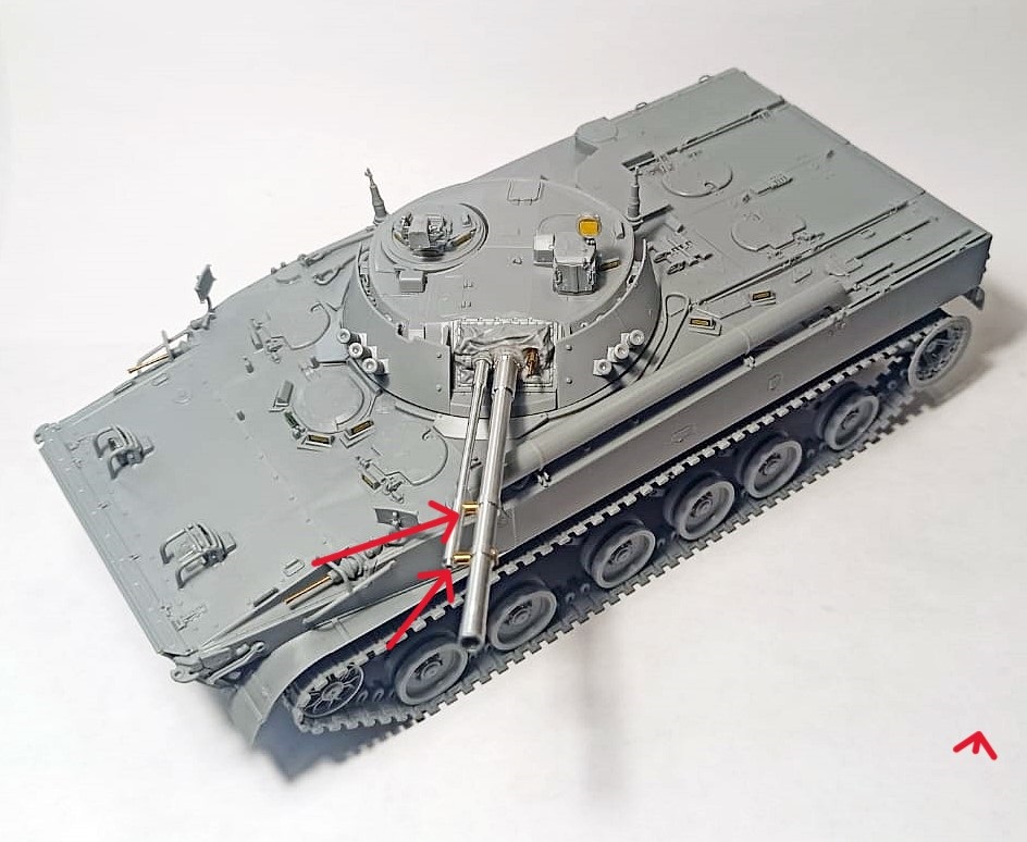 andreiali, Рад видеть! Нет, проблем со стволами не было, хоть RB и делал их не под эту модель. Подвижность ствола не актуальна, так что всё предельно просто, чуть увеличил посадочные отверстия в маске и приклеил супером с содой. Если б их у меня не было, не заморачивался бы и поставил штатные. Они вполне приемлемые. Звезда и тут сделала предельно простой в сборке кит. К тому же максимально удобный для окраски. Собранные корпус, башню, ходовую и экраны можно красить по отдельности.