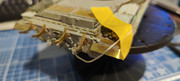 | Всем добра! Продолжаю сборку. Спаял все патронные коробки, сделал проводку и установил фары (одну пришлось заменить от Эльфа, потерял на полу родную), навесил и сделал крепление буксировочного троса к над гусеничной полке. Если танк не развалиться пока клею, то скоро покраска ))