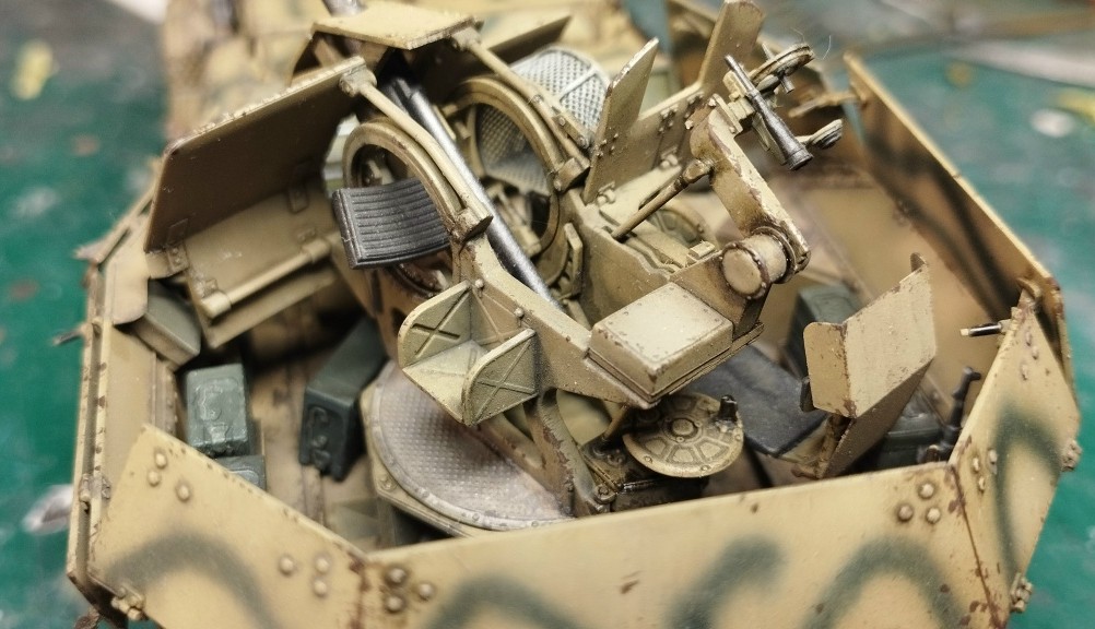 | Цитата andreiali (  ) Цитатане хватает масляных точек? На ваш взгляд,какие цвета надо? Чисто художественно - мысли вслух: наружные поверхности надстройки из-за камуфляжа выглядят достаточно тёмными. Я бы сделал внутренние поверхности в их верхнем сегменте светлее - они лучше освещены, к тому же внутри "рабочую зону" обычно более тщательно моют и грязь там меньше скапливается. Поэтому в верхних сегментах - точки преимущественно светлых тонов, тёмных - только чуть-чуть чтобы разбить монотонность и то в логичных местах - возможно, пара едва заметных ржавых потёков от замков, петель, сколов", дорожки" дождевой воды, конденсата,. Тут тоже важно не переусердствовать  Сколы и потёртости - точечно в местах миграции экипажа и загрузки боекомплекта.
